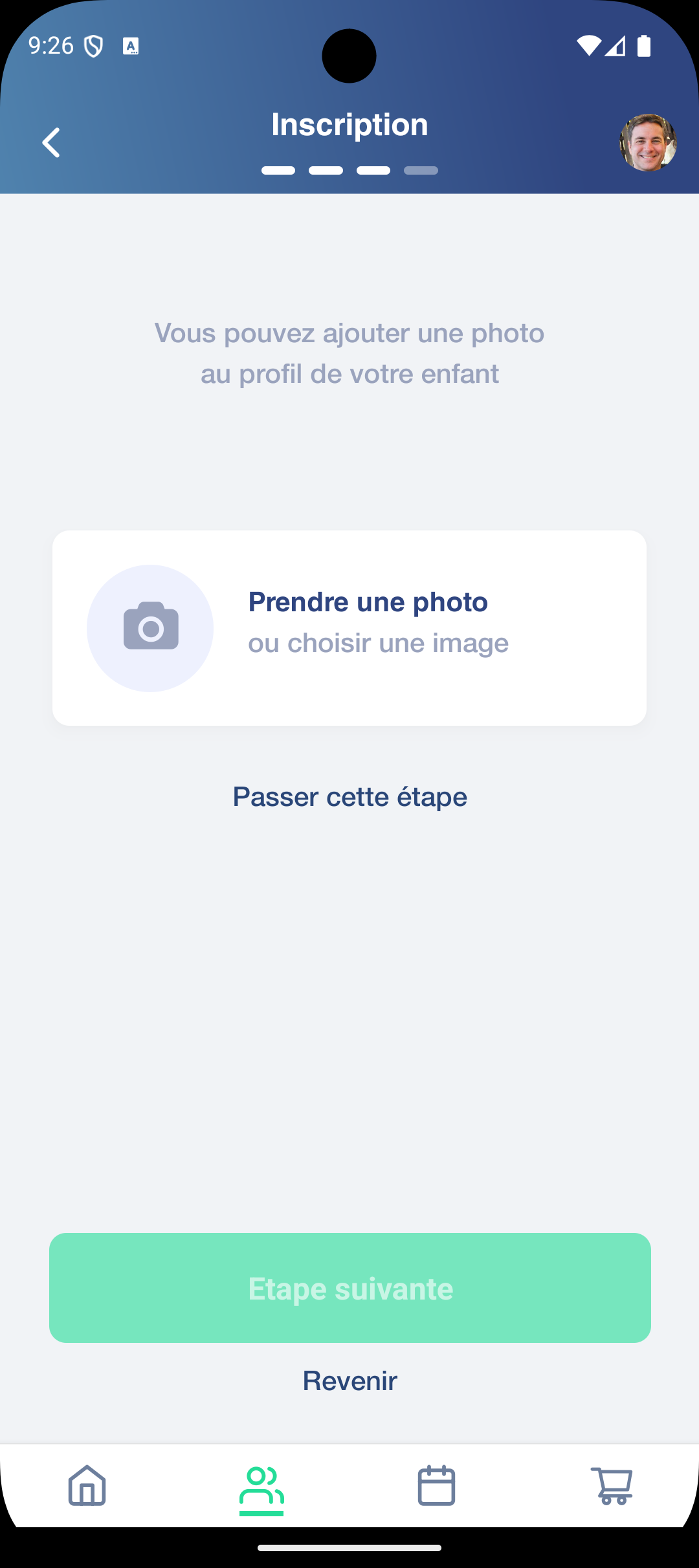 vous pouvez ajouter ou prendre la photo de votre enfant… ou passer cette étape #3ème étape
