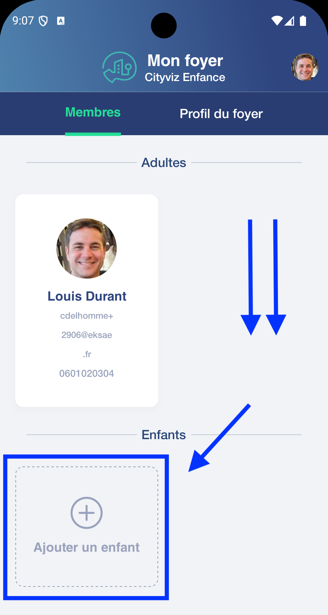 vous devez préciser votre lien de parenté avec l’enfant ajouté