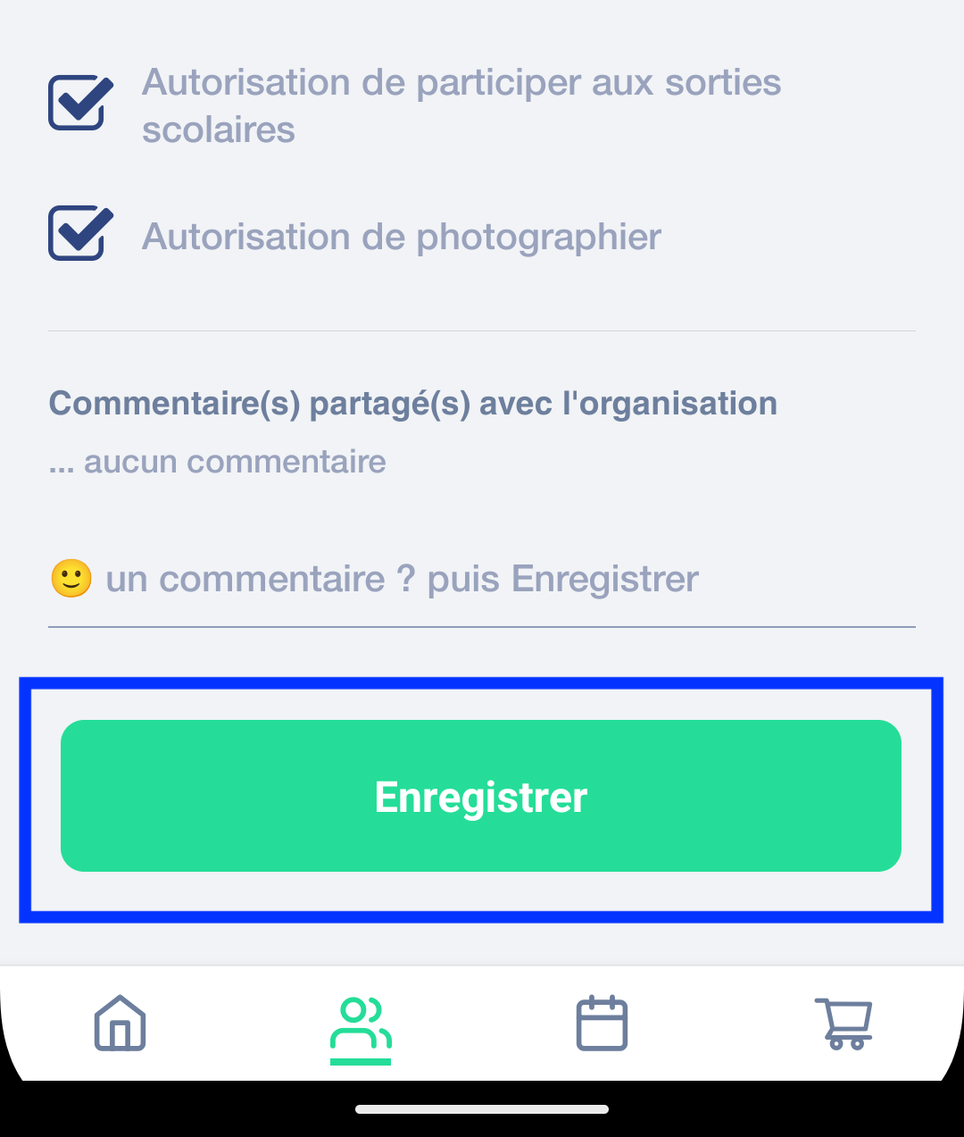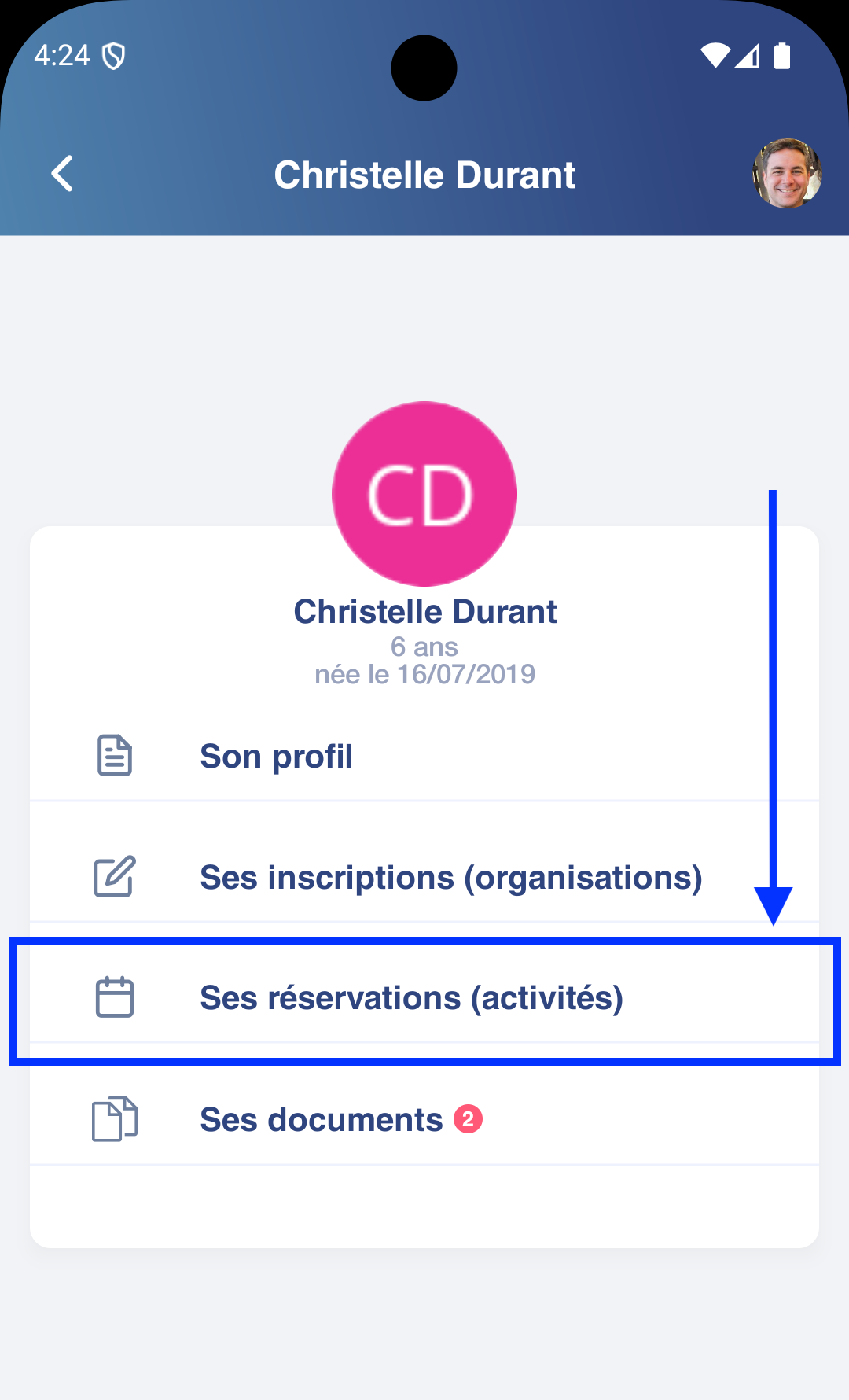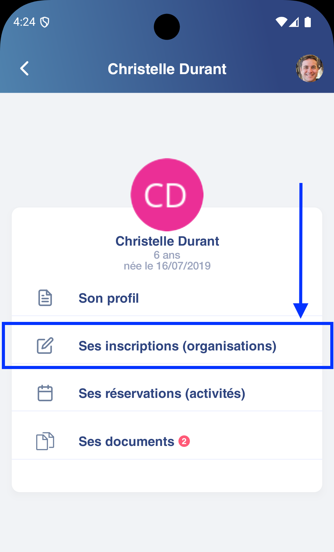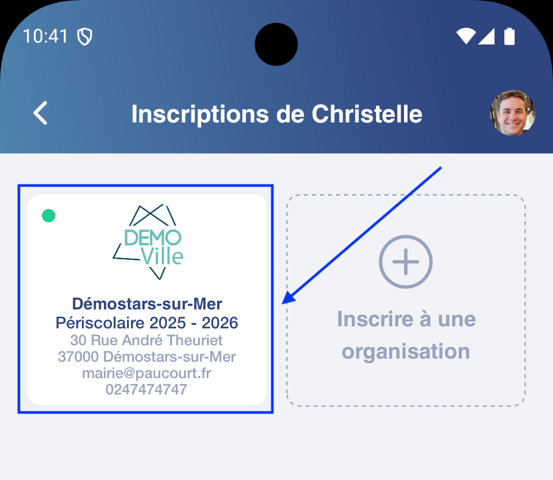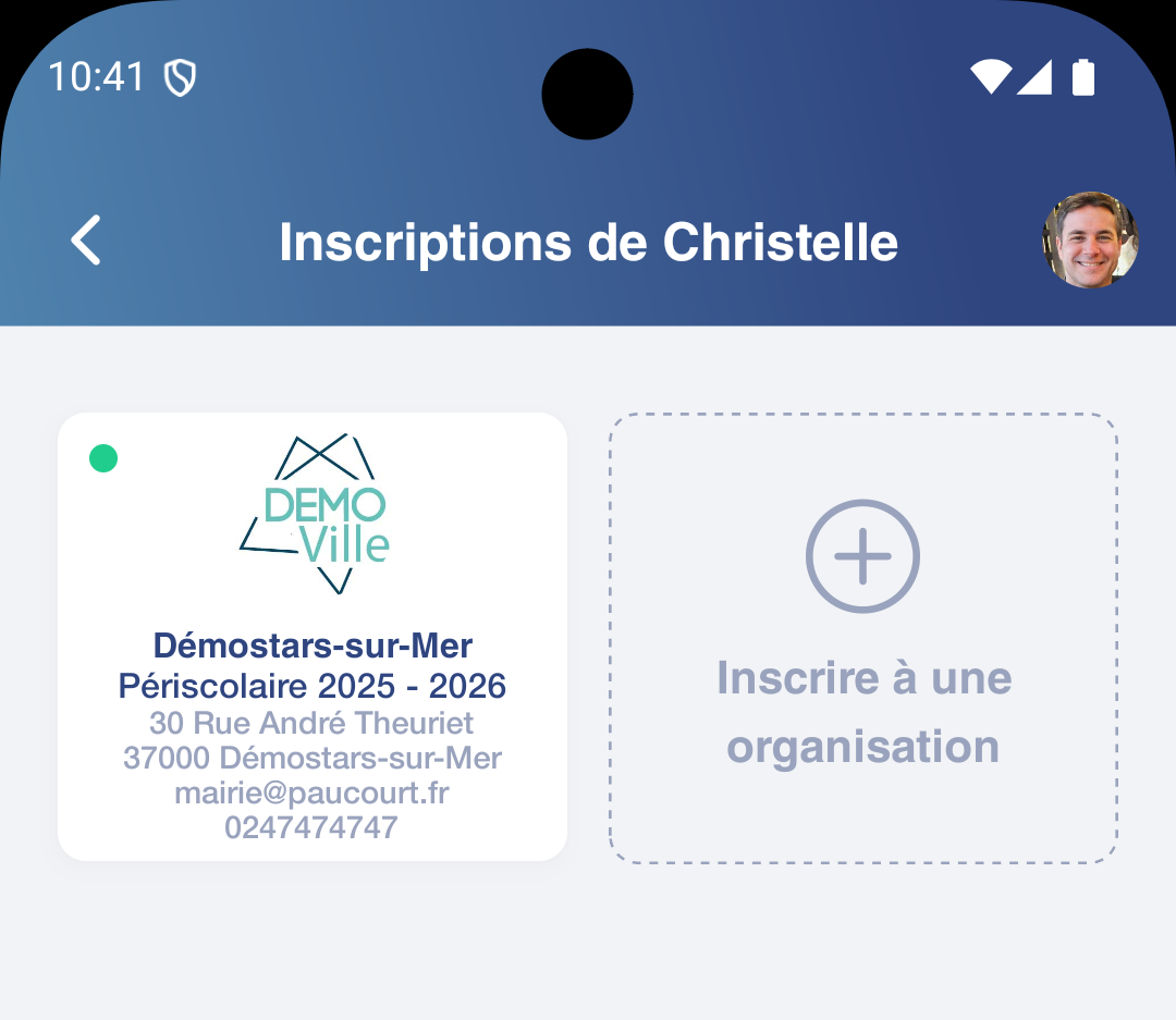 ïžorganisation Ă laquelle lâenfant est inscrit