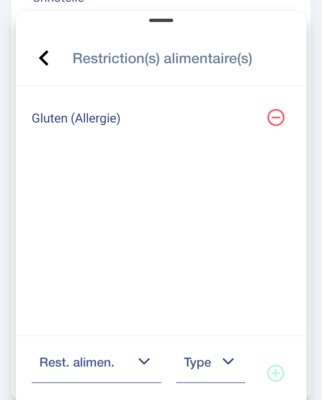 vous pouvez prĂ©ciser pour chaque restriction le type qui sâapplique: Allergie, IntolĂ©rance ou RĂ©gime