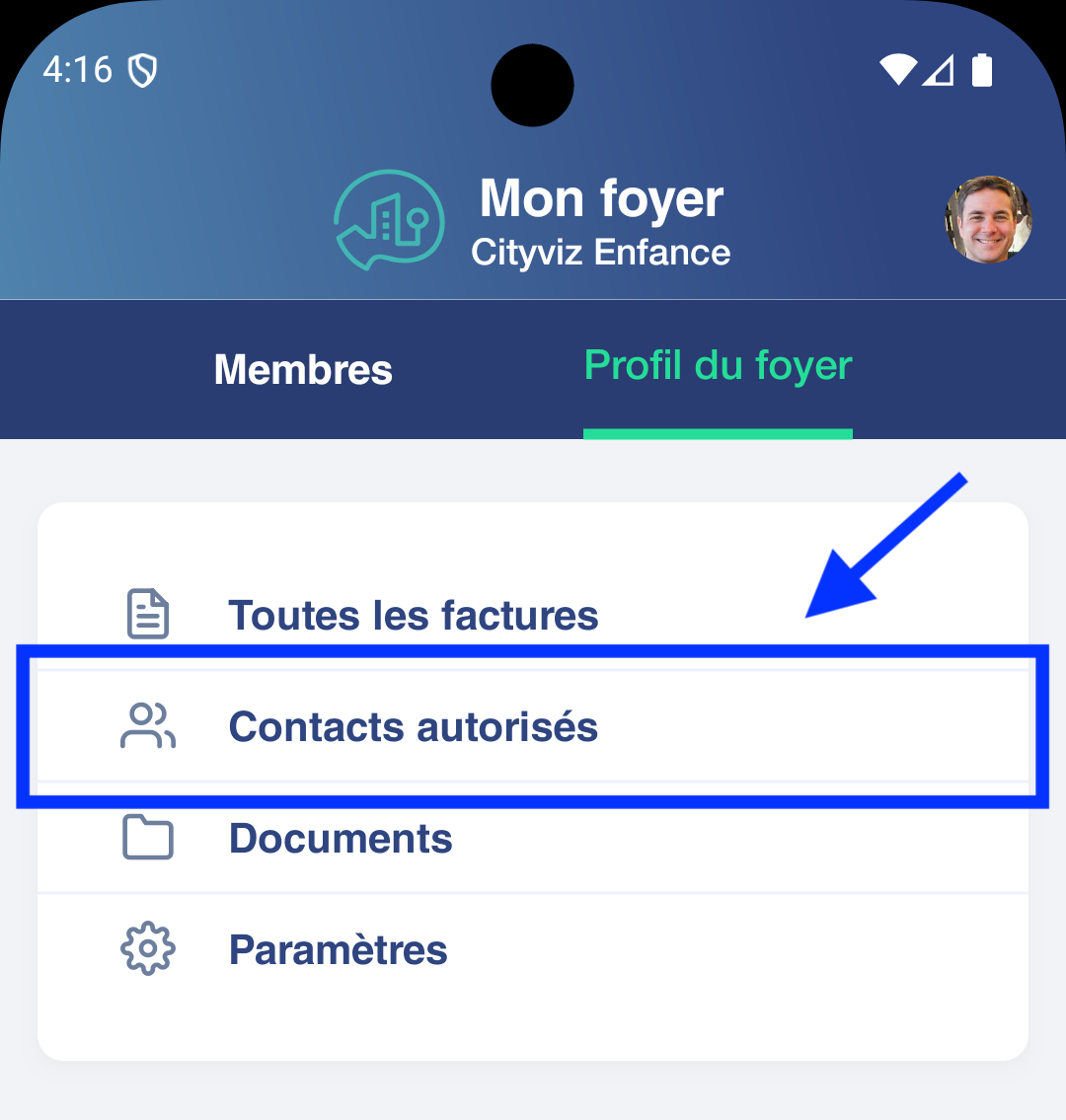 accédez au profil du foyer (