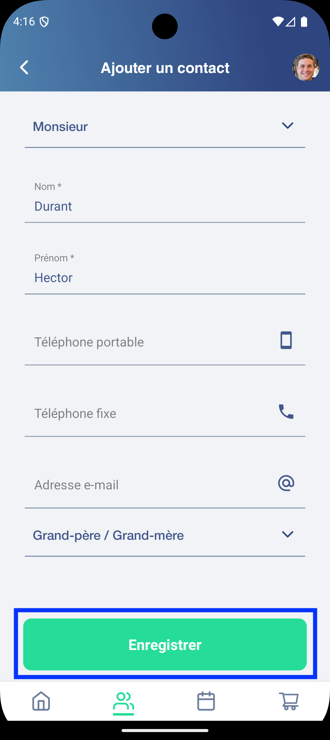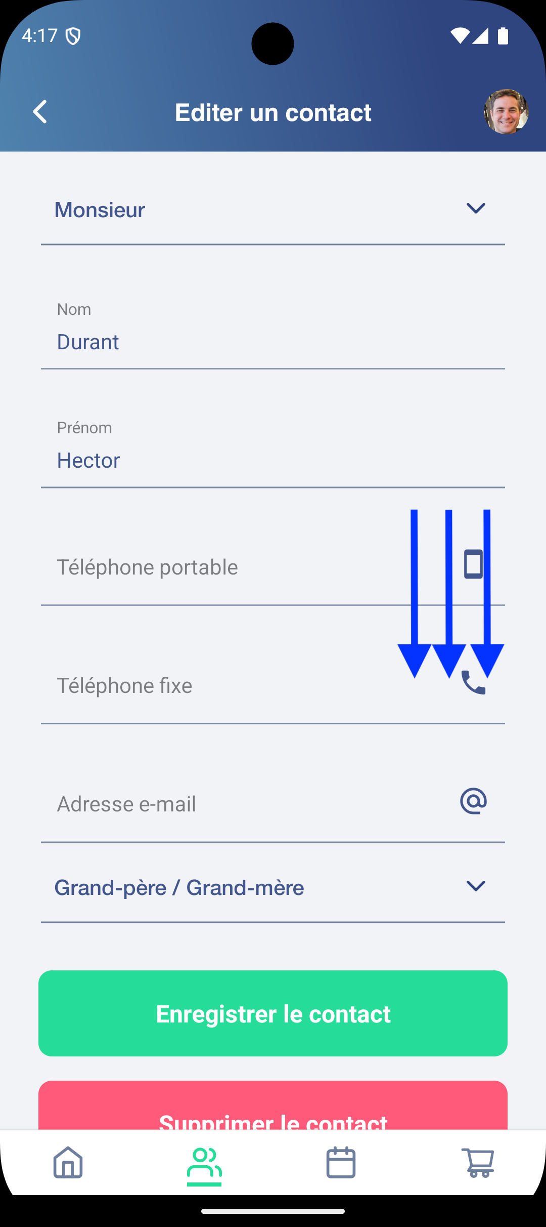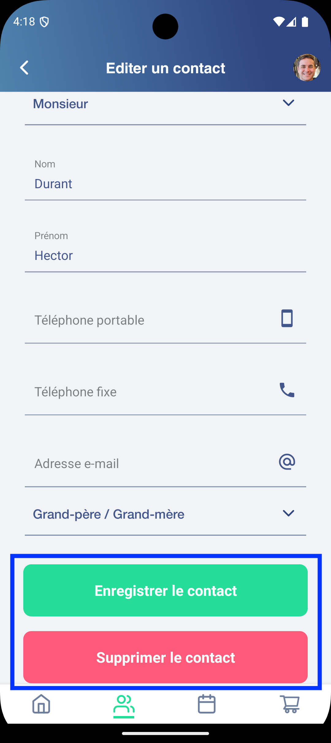 n’oubliez pas d’Enregistrer vos modifications OU Supprimer le contact autorisé