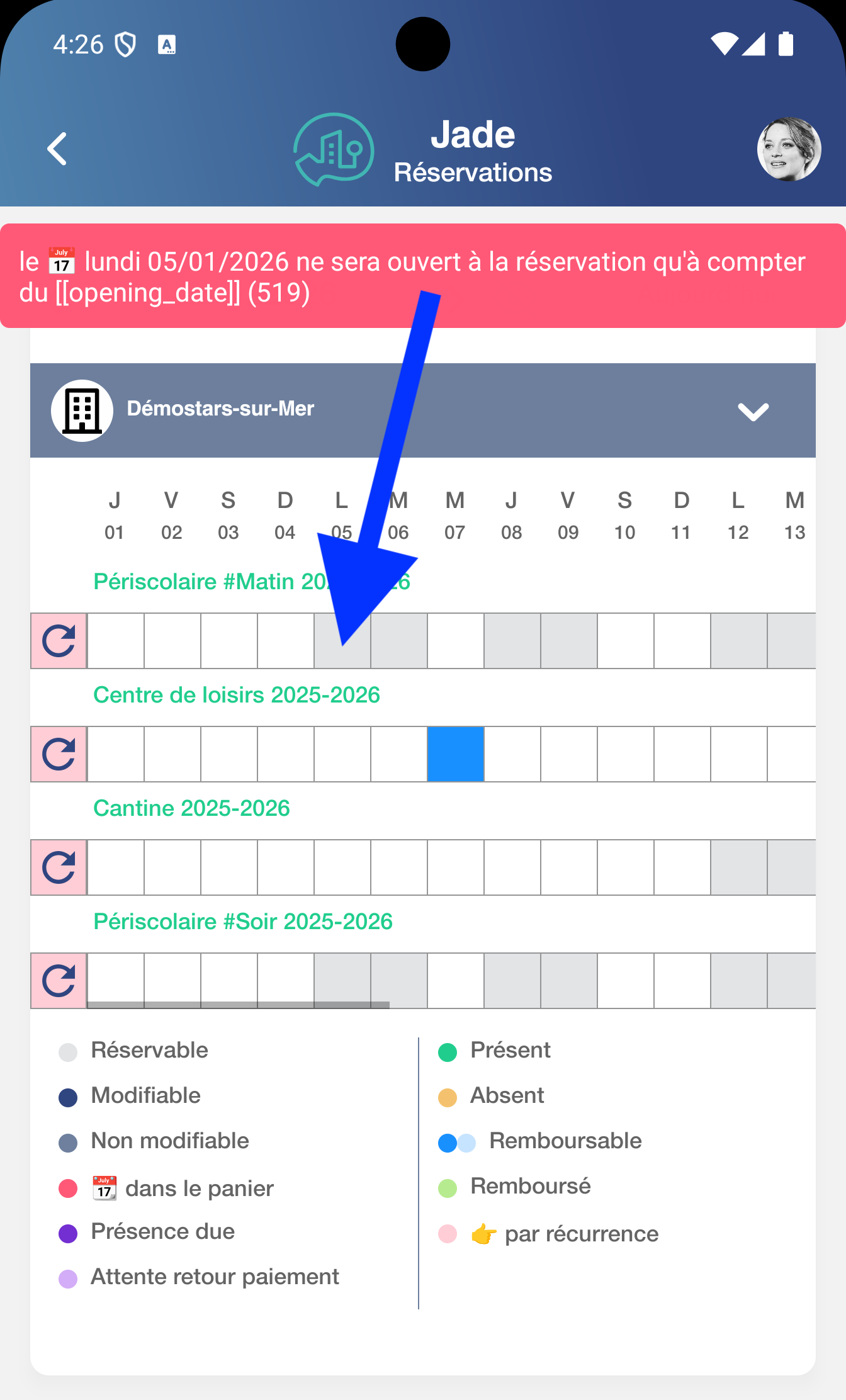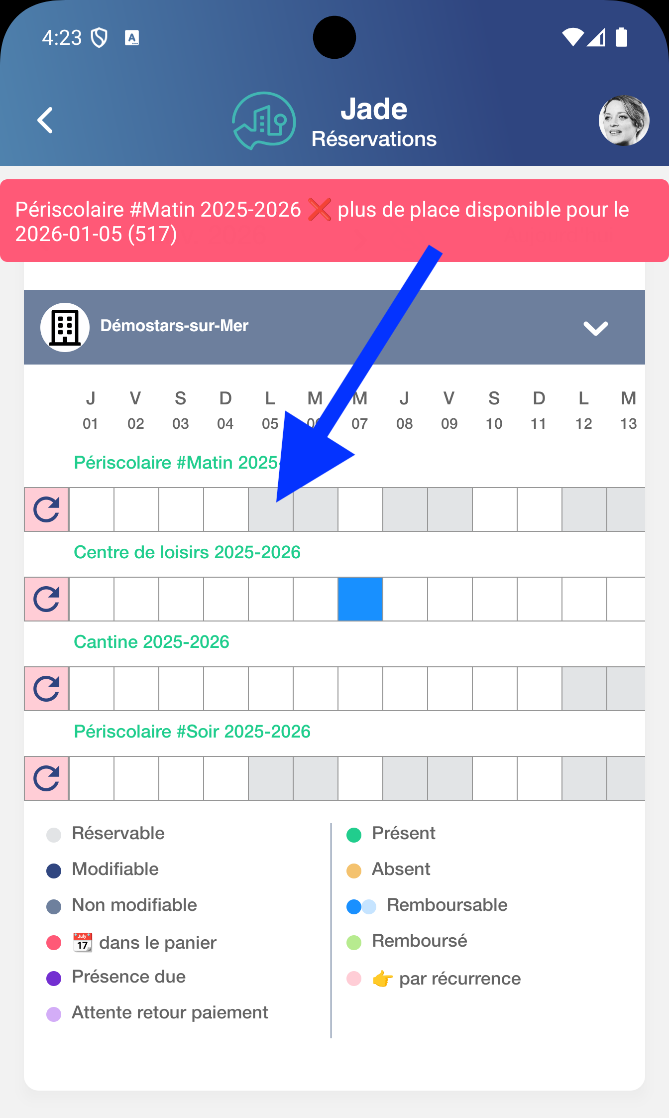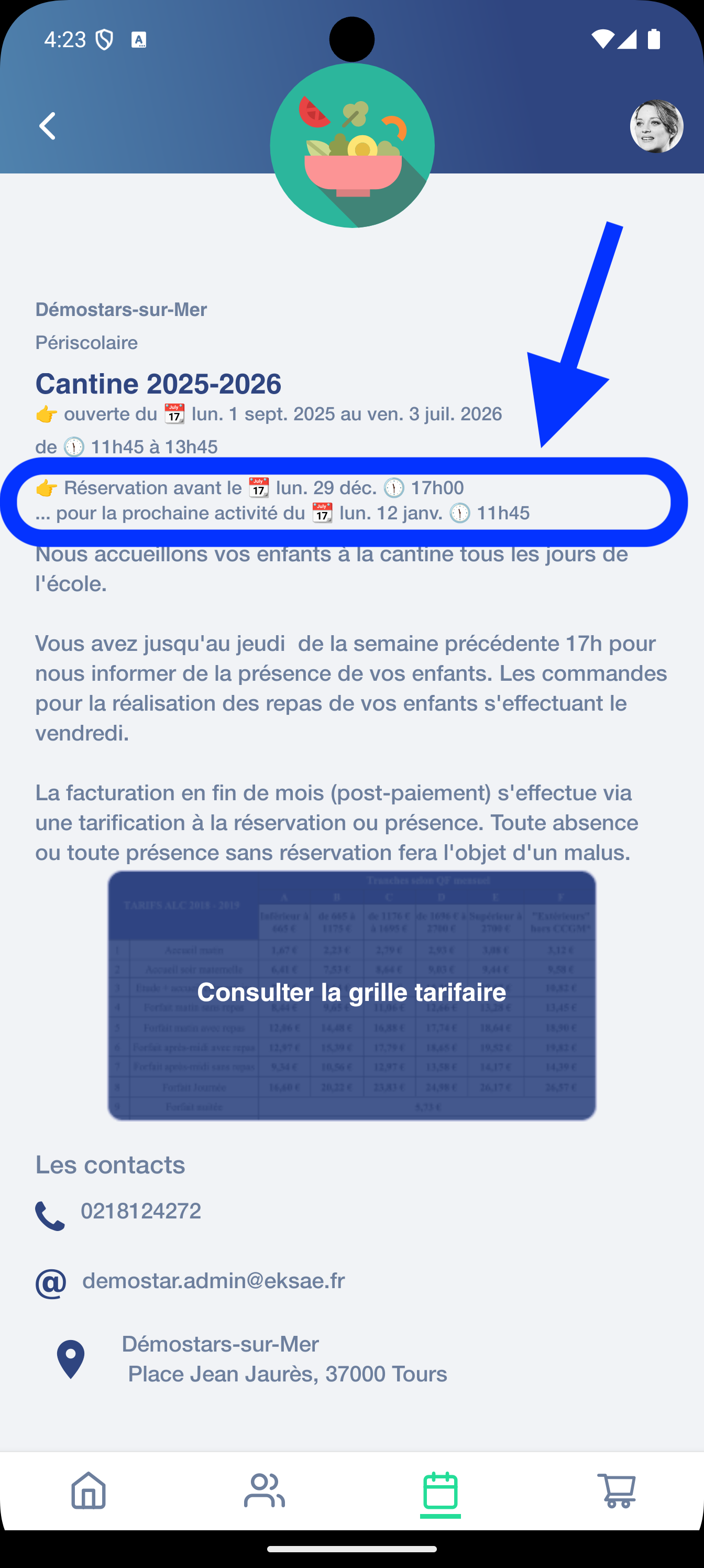 dĂ©lai de prĂ©venance est disponible dans les informations complĂ©mentaires de chaque activitĂ© dans lâĂ©cran des rĂ©servations (en mode #1 enfant ou #multi-enfants)