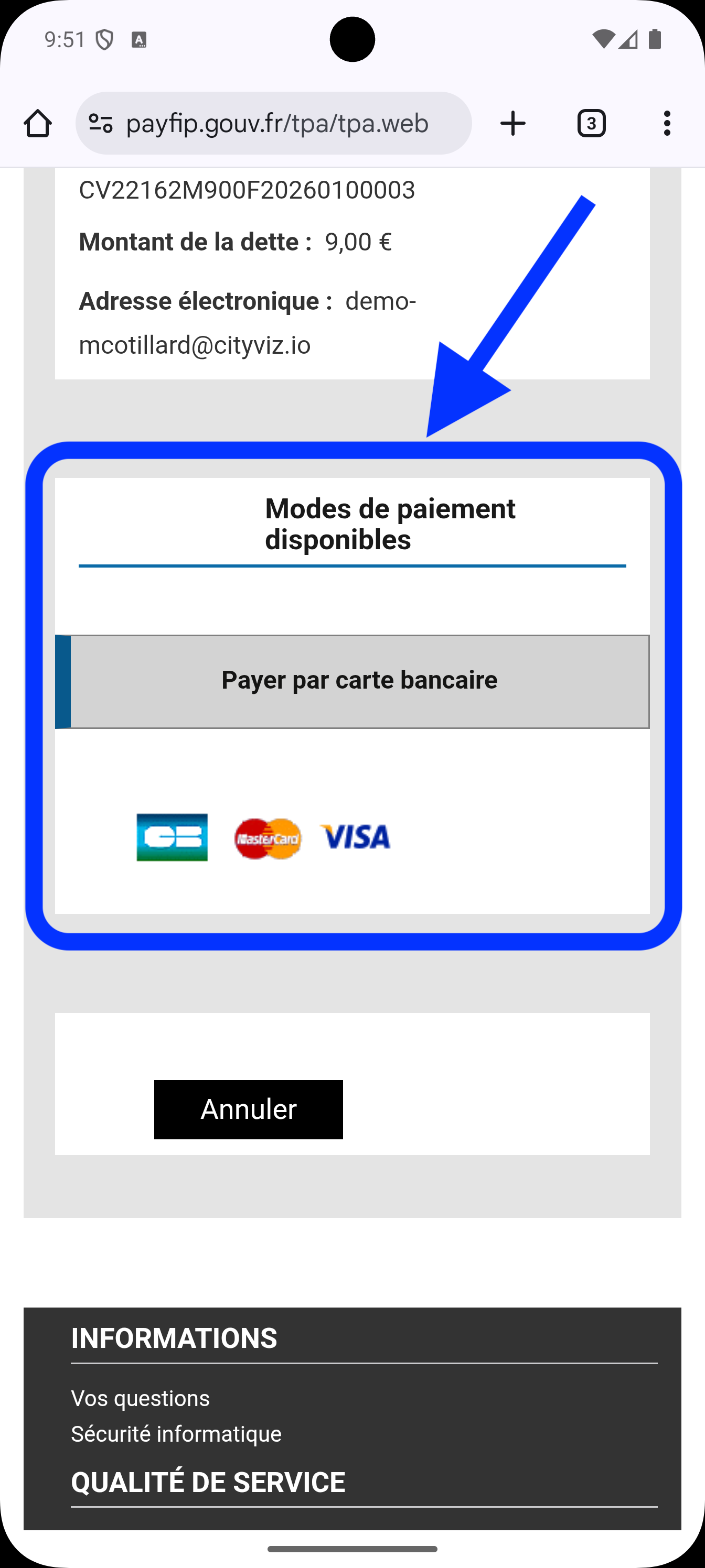 rafraĂźchir la page web de paiement (PayFiP ou PayZen) (CTRL+F5 ou SHIFT+recharger la page sur