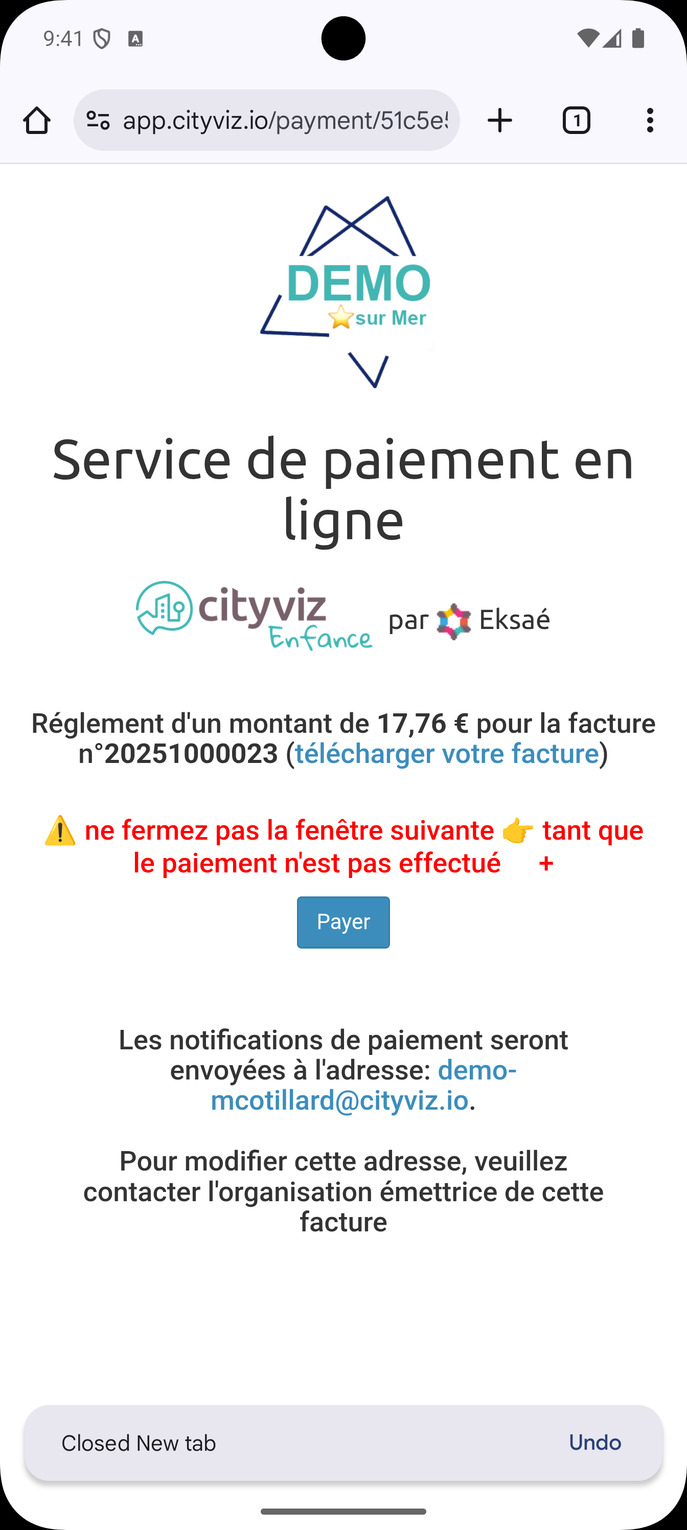 ne fermez pas la page web de paiement (PayFiP ou PayZen) tant que âŠ