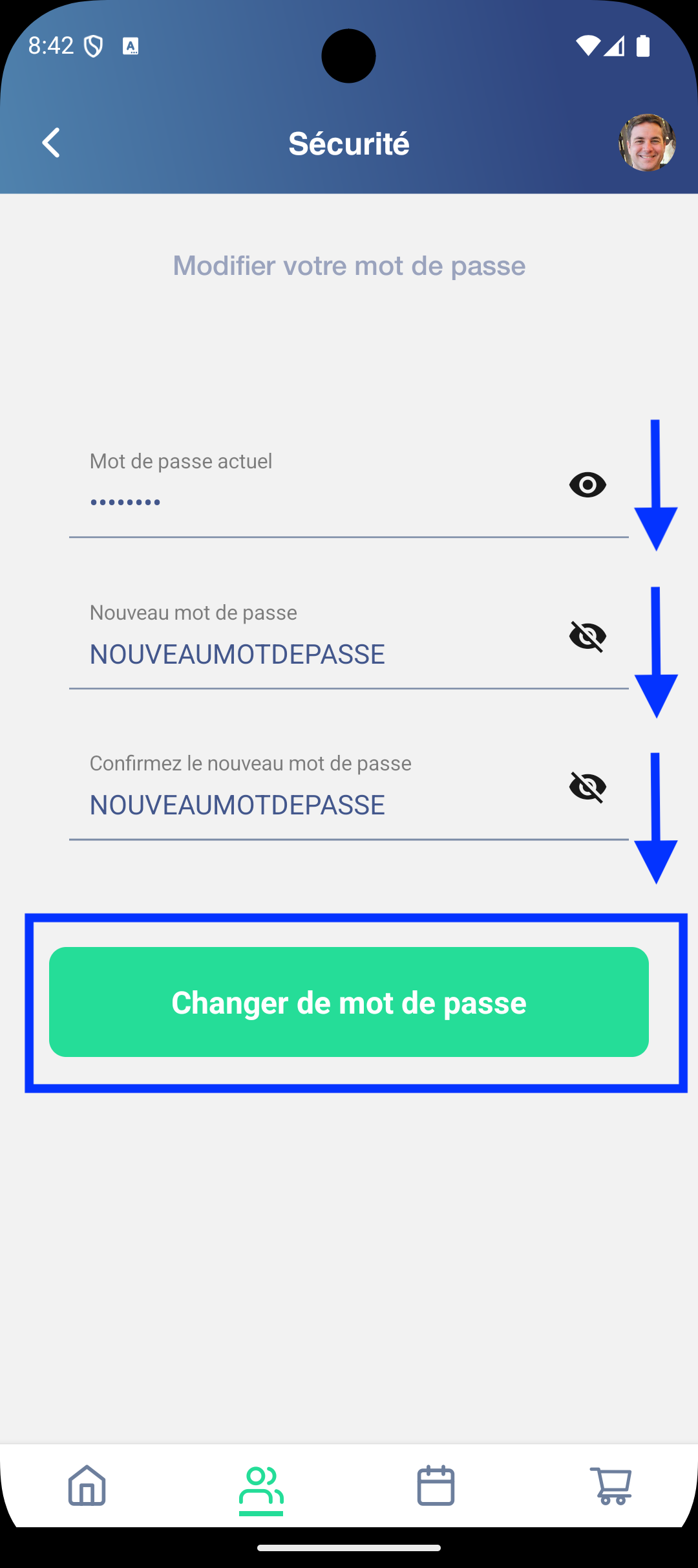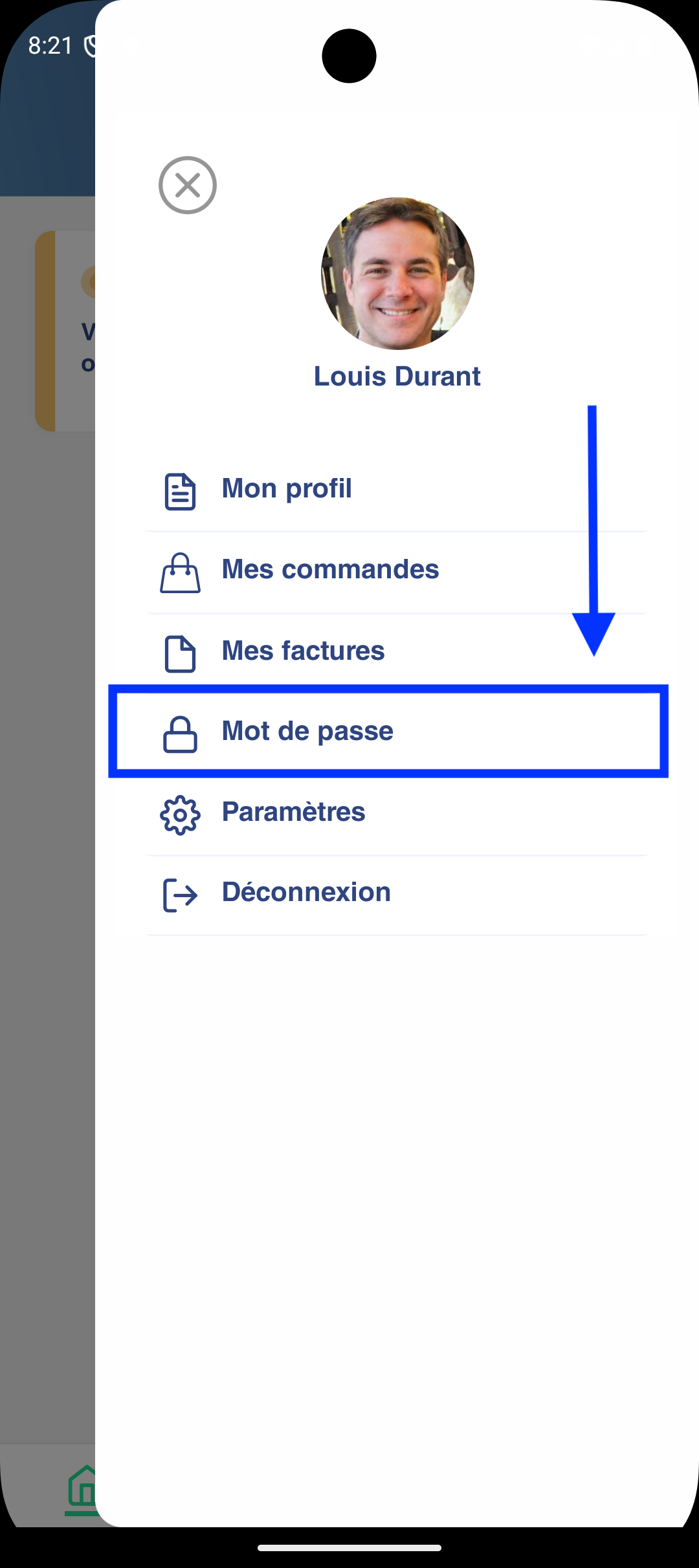 vous pourrez changer votre mot de passe (Mot de passe dans le milieu du menu)
